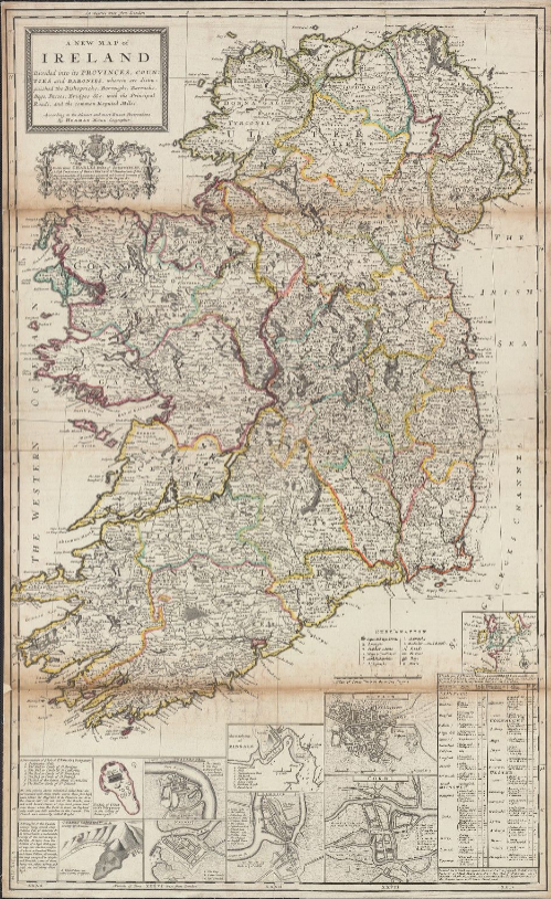 Herman Moll, A New Map of Ireland… (London: T. Bowles, 1714); digital image, Yale University Library Digital Collections (https://collections.library.yale.edu/catalog/15352110 : accessed 3 Sep 2024).