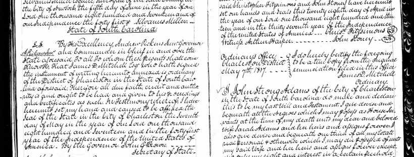 The topic this week for 52 Ancestors is "Where There's a Will." John Strong Adams dangled out on the edge of a branch of our family tree, an orphan with no connection except to his wife. He married my 5th great-aunt, Sarah Eve, and worked for the husband of my 6th great-aunt, Christopher Cashel Fitzsimons. … Continue reading It’s in the Will